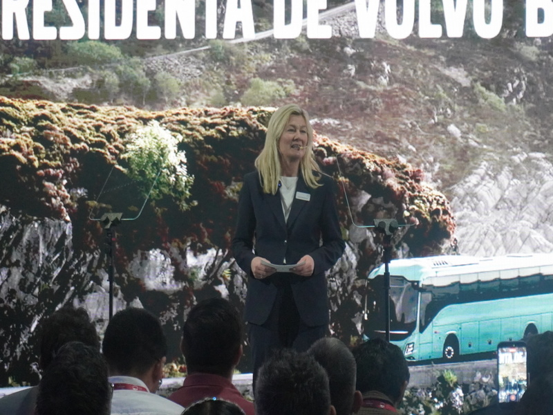 Como su brazo fuerte, la compañía presentó el Volvo 9800, unidad que incorpora un rediseño exterior e interior, iluminación LED, espejos digitales y mejoras en la ventilación del compartimento del motor.