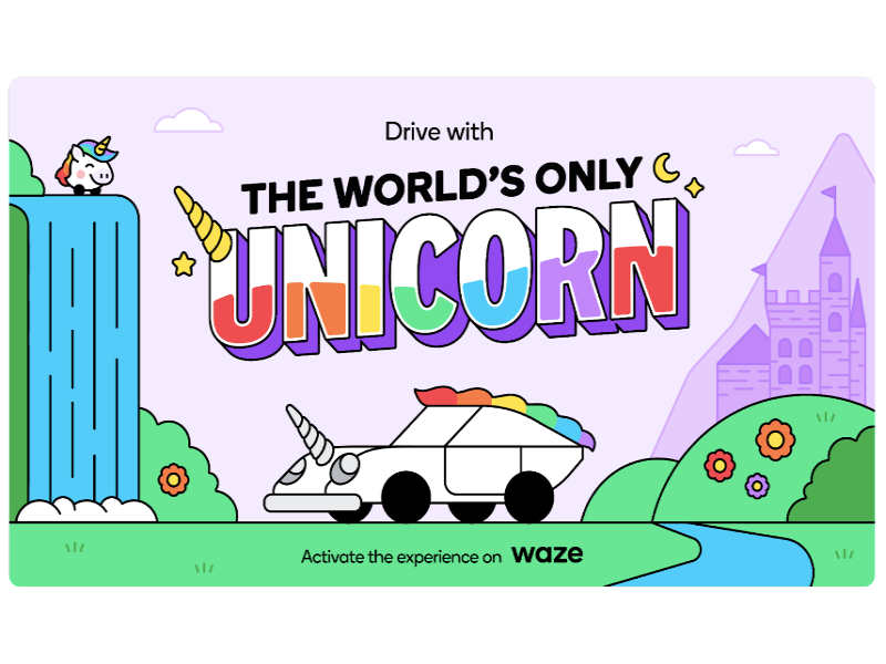 La última experiencia de conducción de Waze le encantará a toda la familia - Unicornio - disponible a partir de hoy. Al conducir con esta mítica críatura (su melena con los tonos del arco iris y su real unicuerno) tu auto se transforma en un vehículo real de fantasía, pues te ayudará a que en cada giro del camino encuentes magia.