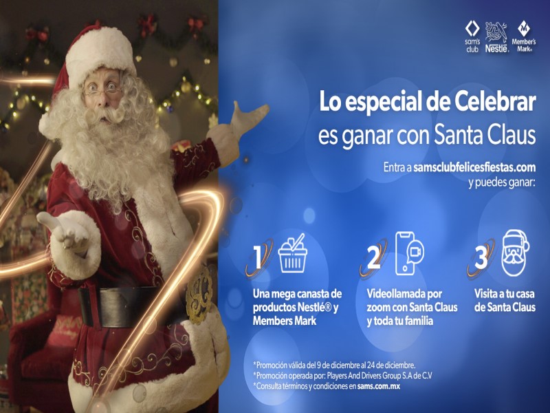 Además, por medio de la ruleta digital, los niños tendrán la oportunidad de ganar premios muy especiales, como una de las tres visitas de Santa a su casa si residen en la Ciudad de México, tener una llamada con él en tiempo real vía Zoom para pedirle los regalos que más desean en esta temporada, o recibir productos Member's Mark, la marca exclusiva de Sam's Club, y productos Nestlé.